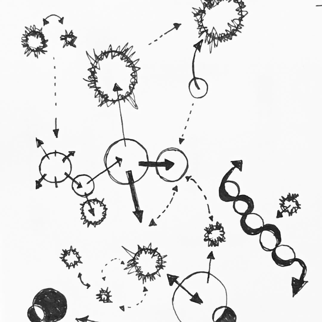 I decided to stay on in London for ten days after finishing my residency in Kent. I was invited to play and do a conduction in the London Improvisers Orchestra’s April concert. I was very excited to have this opportunity as I had some ideas I wished to trial including constructing several graphic scores (samples pictured on the left) and conducting them. When I came to conducting though, I was reminded of how expressive, communicative and innate movement is. In fact, I became aware that all movement is dance. The Malaysian theremin player, sound designer, improviser, composer and educator Ng Chor Guan made me most aware of this. His conduction was truly beautiful and evolved from gentle gestures to convulsions that possessed the orchestra to mirror in sound. I will speak more about dance in my next episode. After having some insightful lessons, listening to as many concerts as I could and gorging on vegan pizza it was time to move on to Germany.
